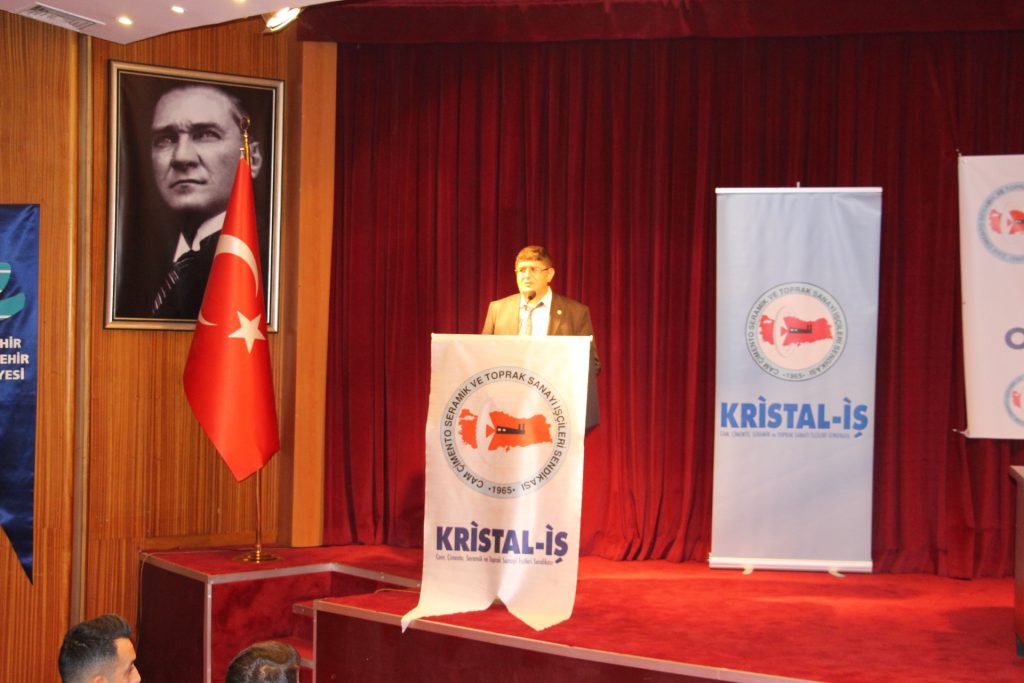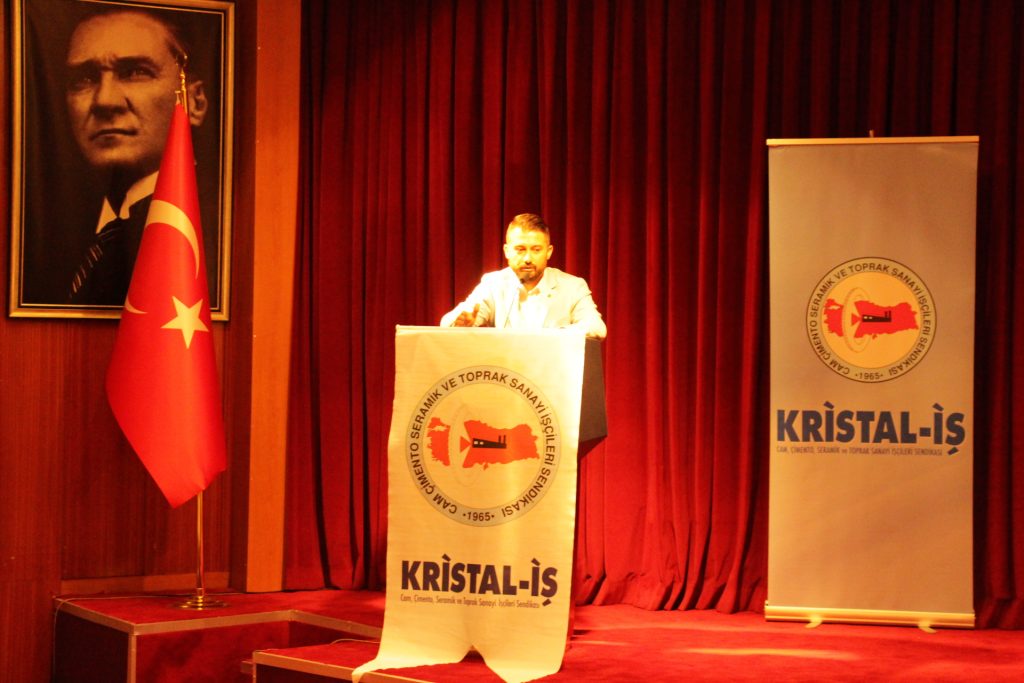 Açış konuşmasını yapmak üzere Kristal-İş Sendikası Eskişehir Şube Başkanı Erdal AKYAZI kürsüye davet edildi. Bu sürede Genel Kurul’u yönetmek üzere Divan önergeleri talep edildi. Erdal AKYAZI Genel Kurul gündemi doğrultusunda konuşmasını gerçekleştirdi.