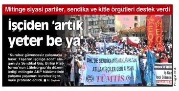 MİLLİYET: 12 BİN İŞÇİ MİTİNGDE