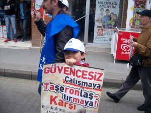 14 Nisan 2013 Pazar günü Eskişehir Sendikalar Platformu tarafından “Güvencesiz Çalışmaya, Taşeronlaştırmaya Karşı” saat 14.00’da İl Sağlık Müdürlüğü önünden Hamamyolu Yediler Parkı’na yürüyüş düzenlendi. Yürüyüşün ardından saat 15.00’da Eskişehir Sendikalar Platformu dönem sözcüsü ve Kristal-İş Eskişehir şube başkanı Erdal Akyazı basın açıklaması yaptı.