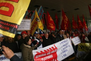 Sendikal Güç Birliği Platformu, grev kararı alan Hava-İş Sendikası’na destek amacıyla Atatürk Havalimanı Dış Hatlar girişinde toplandı. Eyleme Sendikal Güç Birliği Platformu’nu oluşturan sendikalar dışında, Emek Partisi, Disk’e bağlı Gıda-İş Sendikası, İstanbul bağımsız milletvekili Levent Tüzel ve Çarşı taraftar grubu da destek verdi.