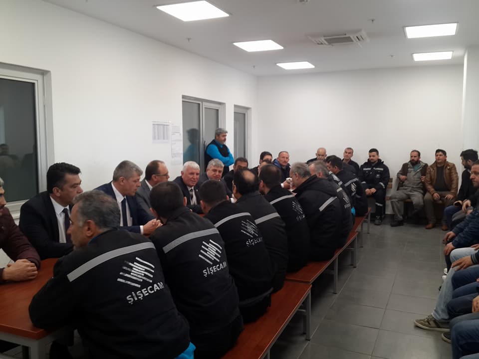 Sendikamız Genel Başkanı Bilal Çetintaş, Genel Başkan Yardımcısı Selim Çallı, Genel Başkan Yardımcısı Serdar Başyiğit, Genel Eğitim Sekreteri İbrahim Öz ve Genel Mali Sekreteri Şeref Ömer Gülbaş, Şişecam’ın Eskişehir ilinde ve Ankara’nın Polatlı ilçesinde kurulu bulunan fabrikalarında çalışan üyelerimizi fabrikalarında ziyaret etti. Eskişehir Şube Yöneticilerimizin de eşlik ettiği ziyaretlerde üyelerimizle karşılıklı görüş alışverişinde bulunuldu. Fabrika ziyaretlerinin sonrasında Eskişehir Büyükşehir Belediyesi Taşbaşı Kültür Merkezi Toplantı ve Konferans Salonu ‘nda üyelerimizle bir toplantı tertiplendi. Sendikamızın gündeminde bulunan konular üyelerimiz ile paylaşılırken üyelerimizin konular hakkındaki düşünce ve görüşleri de alınarak üyelerimizin konularla ilgili sorularına açıklık getirilmeye çalışıldı.