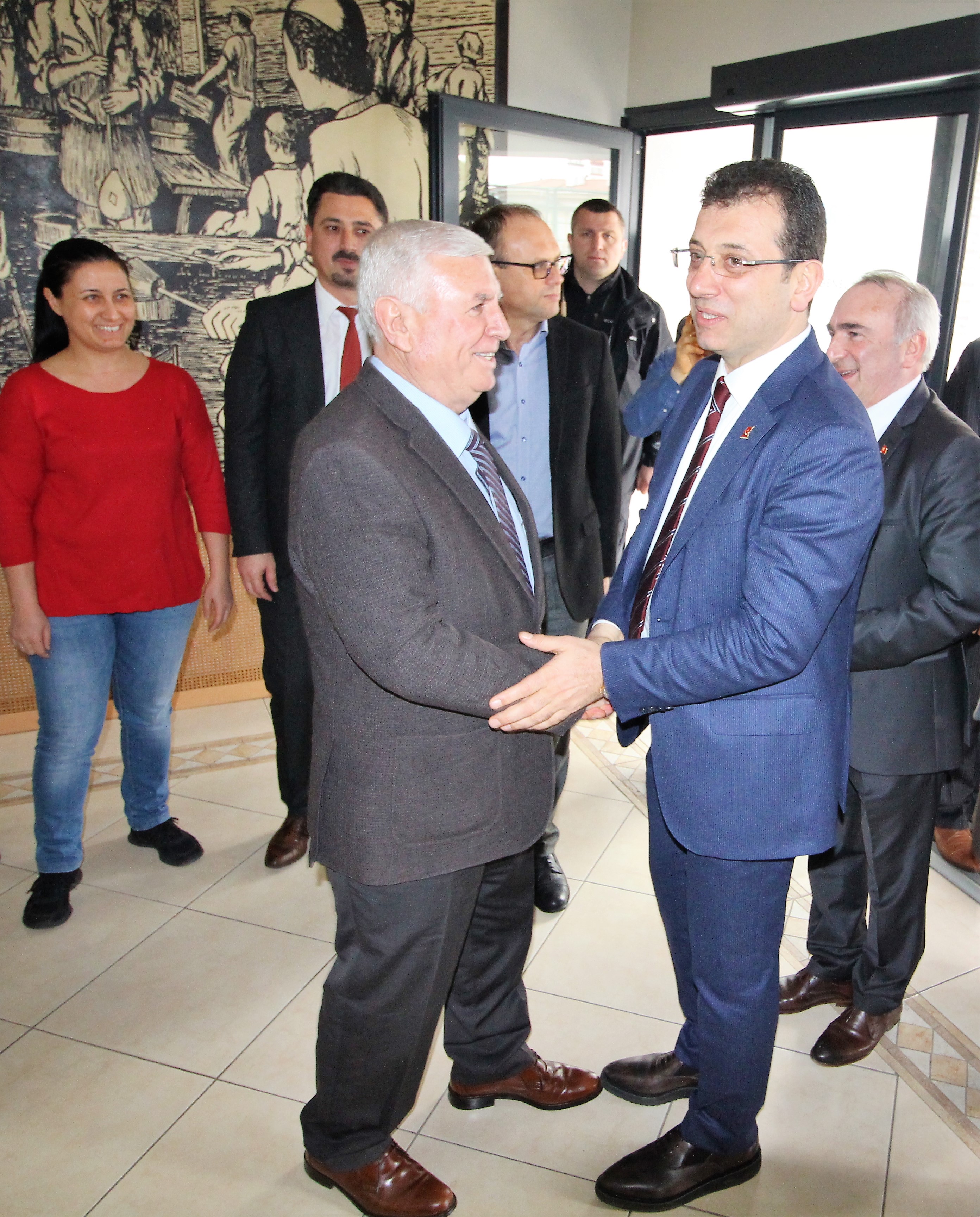 Cumhuriyet Halk Partisi’nin (CHP) İstanbul Büyükşehir Belediye Başkan adayı Ekrem İmamoğlu ve Beykoz Belediye Başkan adayı Coşkun Tosun, 21 Şubat Perşembe günü sendikamıza kısa bir ziyarette bulundular. Bu ziyarette İmamoğlu ve Tosun’a CHP Beykoz İlçe Başkanı Aydın Düzgün, bir grup CHP’li ve basın mensupları eşlik etti.