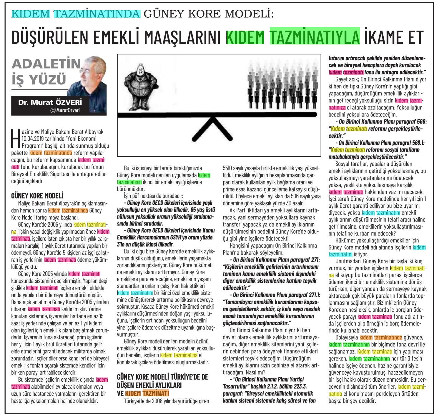 GÜNEY KORE MODELİ TÜRKİYE’DE DE DÜŞEN EMEKLİ AYLIKLARI VE KIDEM TAZMİNATI