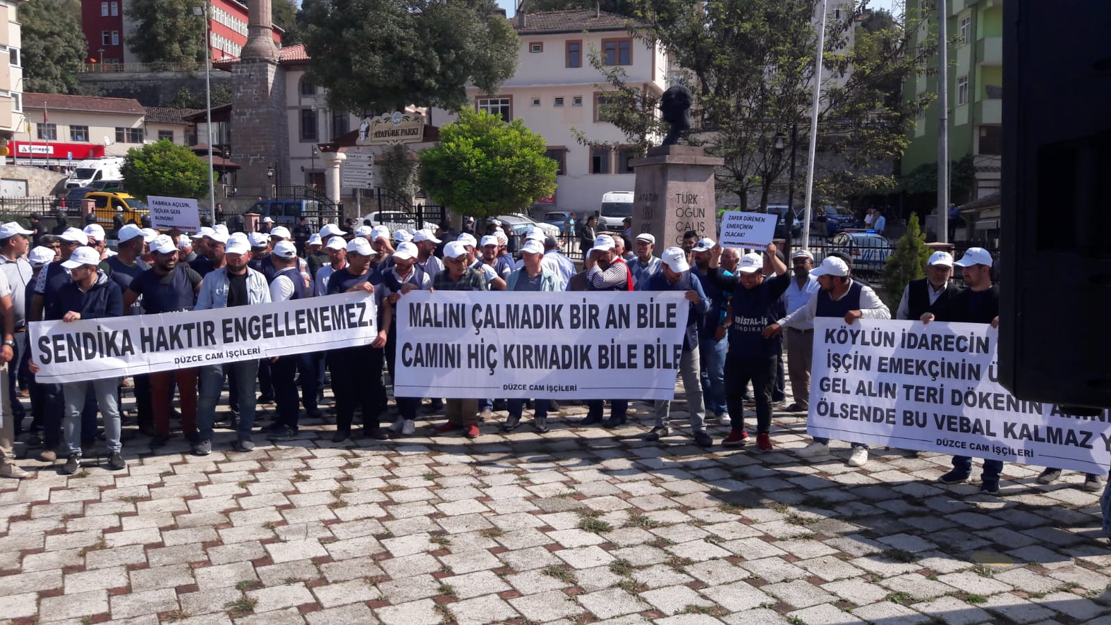 Kristal-İş Sendikası üyeleri Düzce Cam’da 26 Temmuz’dan bu yana grevdeler. İşten çıkarılan Birlik Cam işçileri de onlarla birlikte fabrika önünde omuz omuza mücadele veriyorlar. Çetaş işçileri ise Samsun’un Kavak ilçesinde kapatma kararına karşı başlattıkları direniş eylemini sürdürüyorlar.