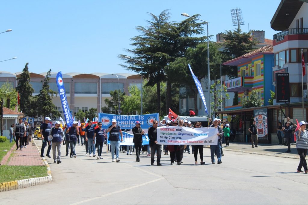 Trakya Şube Başkanımız Mehmet Özmüş, Şube Yönetim Kurulu ve diğer şube organları üyeleri, temsilcilerimiz ve fabrikalardan gelen üyelerimizle birlikte, geleneksel 1 Mayıs kortejinin devamında Lüleburgaz’da Kongre Meydanı’nda, çok sayıda kitle örgütü ve siyasi parti temsilcisinin katılım sağlamasıyla gerçekleştirilen kutlamalara katıldı. Şube Başkanımız Mehmet Özmüş bu etkinlikte 1 Mayıs’ın önemine vurgu yapan, çalışma yaşamının güncel sorunlarını irdeleyen ve talepleri içeren konuşmasını gerçekleştirdi.