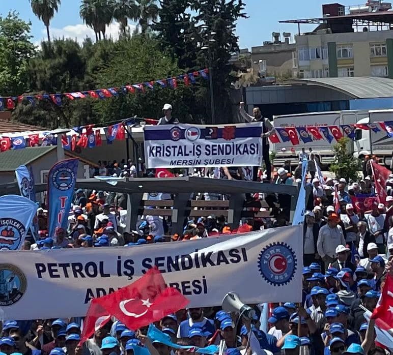Bu 1 Mayıs’ta Genel Başkanımız Bilal Çetintaş, Genel Başkan Yardımcımız Faruk Aslan ve Mersin Şube Başkanımız Ahmet Yasin Özdemir, Şube Yönetim Kurulu ve diğer şube organları üyeleri, temsilcilerimiz ve fabrikalardan gelen üyelerimizle birlikte Türk-İş Konfederasyonu’nun Adana’da gerçekleştirdiği kutlamalara katılım sağladı. Genel Başkan Yardımcımız Selim Çallı İstanbul Maltepe’de gerçekleştirilen kutlamalara katılım sağlarken, Genel Merkez Eğitim Sekreterimiz Cihat Ergin Gebze’de, Genel Mali Sekreterimiz Burhan Kurt ise Eskişehir’de gerçekleştirilen etkinliklere katılım sağladı.