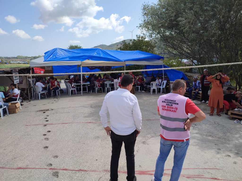 Tekgıda-İş Sendikası’na üye olan 146 işçi sadece bu nedenle kod-46 ile işten atıldı. Bu haksızlık karşısında işçilerin fabrika önünde başlattıkları direnişin 33’üncü gününde Genel Başkan Yardımcımız Faruk Aslan işçilere dayanışma ziyareti gerçekleştirdi.