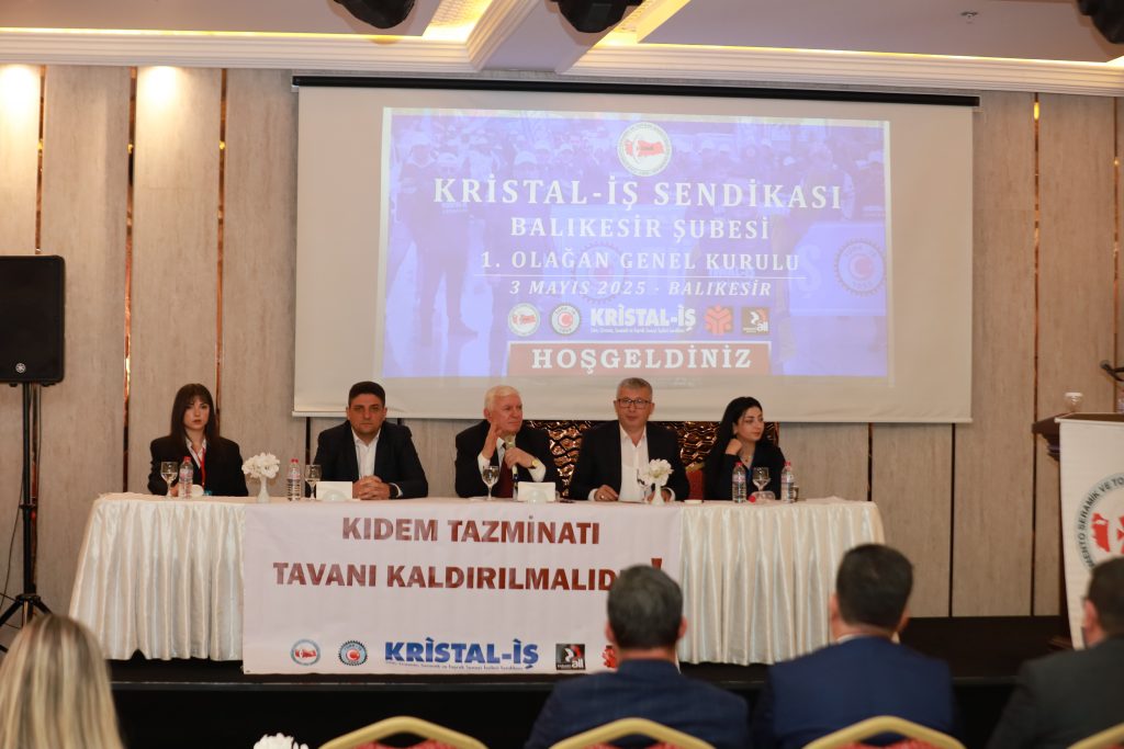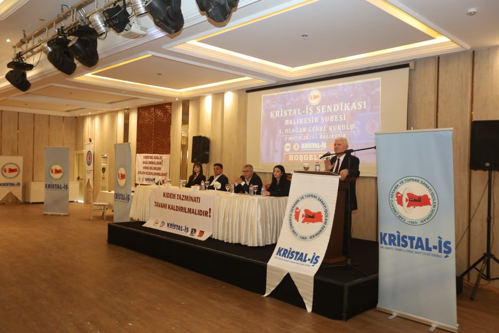Kristal-İş Sendikası Balıkesir Şubesi’nin 1. Olağan Genel Kurulu, 3 Mayıs 2025 Cumartesi günü Balıkesir Altın Otel Toplantı Salonu’nda yapıldı. Katılımın yoğun olduğu genel kurul, saat 10.00’da Balıkesir Şube Kurucular Kurulu Sekreteri Oktay Kara’nın çoğunluk tespitiyle açıldı.