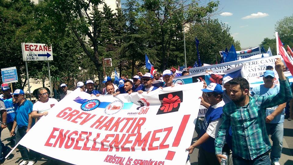 GREV ERTELEMESİNE KARŞI ANAYASA MAHKEMESİ’NE HAK İHLALİ (BİREYSEL) BAŞVURUSUNDA BULUNDUK Kristal-İş Sendikası, hükümet tarafından 27 Haziran 2014 tarihinde keyfi biçimde ertelenen Şişecam gr... Devamını oku