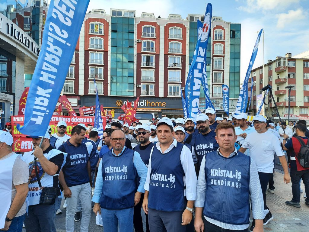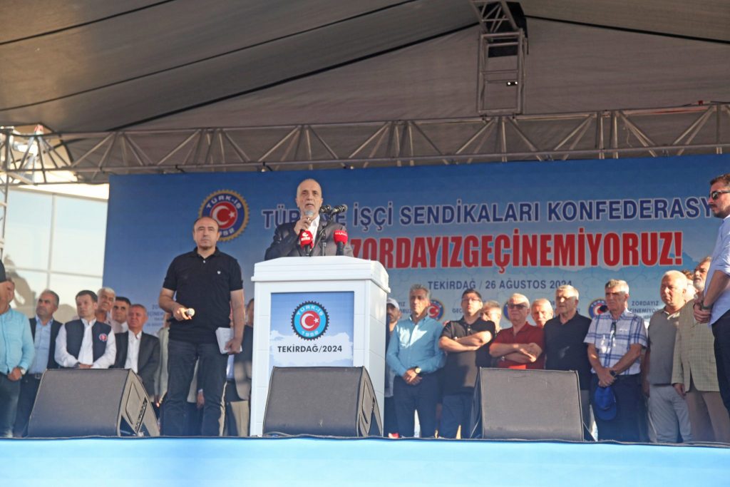 Çerkezköy Kent Meydanı’nda yapılan mitinge Türk-İş Yönetim Kurulu, Türk-İş’e bağlı sendikaların genel başkanları, yöneticileri ve üyeleri katılım sağladı.