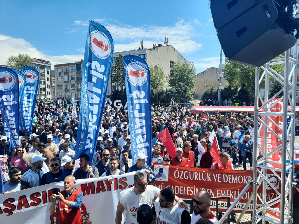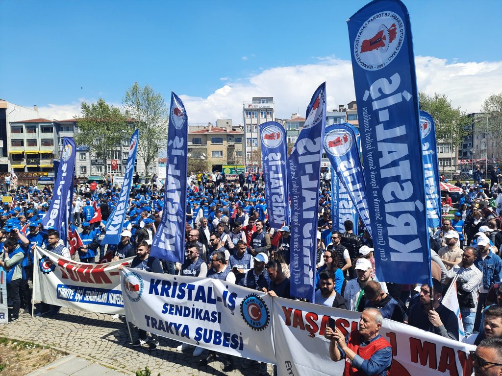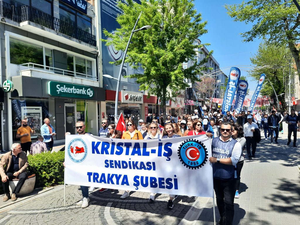 Trakya Şube Başkanımız Mehmet Özmüş, Şube Yönetim Kurulu ve diğer şube organları üyeleri, temsilcilerimiz ve fabrikalardan gelen üyelerimizle birlikte, geleneksel 1 Mayıs kortejinin devamında Lüleburgaz’da Kongre Meydanı’nda, çok sayıda kitle örgütü ve siyasi parti temsilcisinin katılım sağlamasıyla gerçekleştirilen kutlamalara katıldı. Şube Başkanımız Mehmet Özmüş bu etkinlikte 1 Mayıs’ın önemine vurgu yapan, çalışma yaşamının güncel sorunlarını irdeleyen ve talepleri içeren konuşmasını gerçekleştirdi.