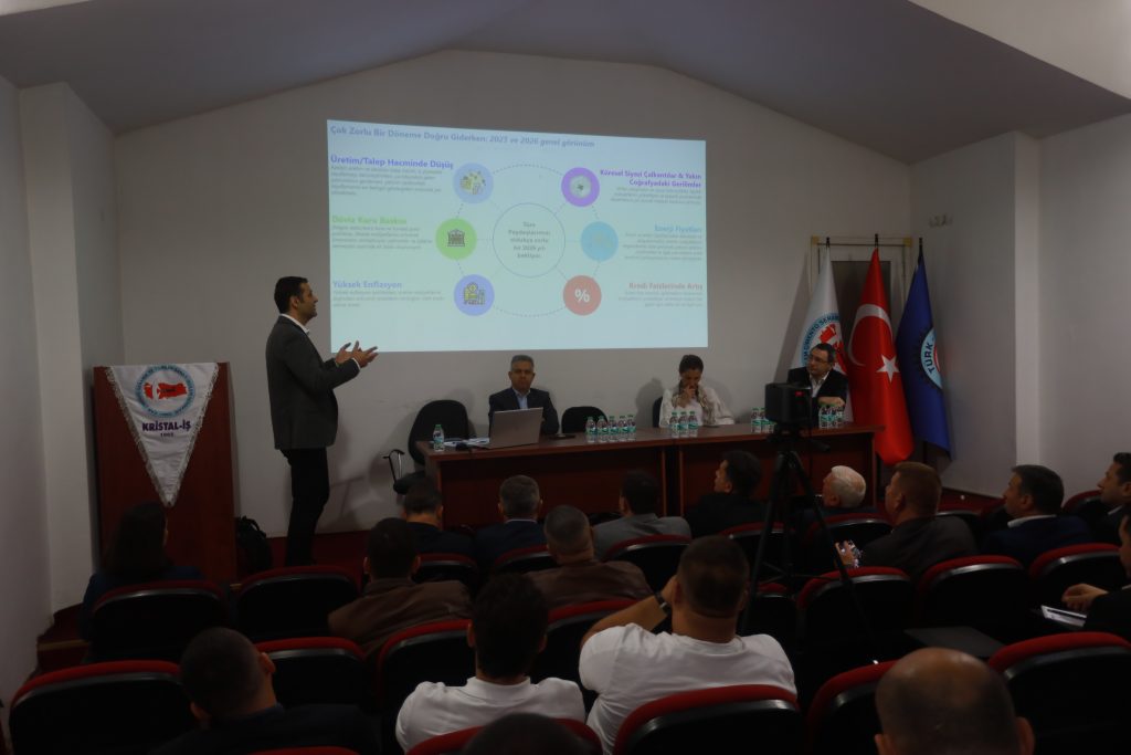 Bu değerlendirmelerin öncesinde, örgütlü olduğumuz Cam Grup işyerlerindeki finansal sonuçlar, ŞİŞECAM bünyesindeki yatırımlar ve istihdamın seyrine yönelik yaşanan sorunlarla ilgili işveren yetkililerinden brifing alındı. İşveren yetkilileri, Başkanlar Kurulumuza ve işyeri baştemsilcilerimize, şirketin genel durumuna yönelik bir sunum gerçekleştirdi ve sunumun ardından salondan gelen sorulara açıklık getirdi.
